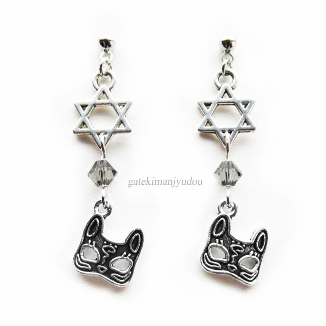 〈ビーズの色が選べる〉六芒星と狐面のピアス【イヤリング等変更可】