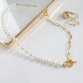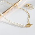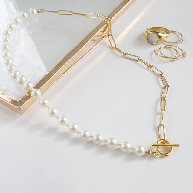 美しい艶の貝パールとチェーンをミックスさせたネックレス。