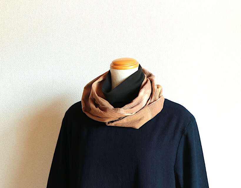 草木染の綿を組み合わせた2重に巻くタイプのスヌードです。