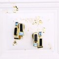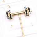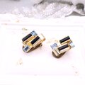 濃紺(ネイビー)カラーのバー状パーツと、澄んだライトブルーのレクタングルストーンを組み合わせ、奥行きのある配置が施されています。