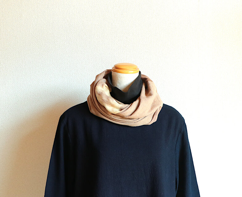 草木染の綿を組み合わせた2重に巻くタイプのスヌードです。