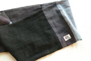 薄地の黒とグレーの縞模様の綿混リネンと黒の綿を組み合わせて作りました。