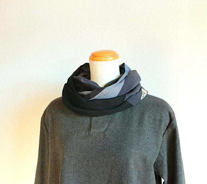 綿混リネンと綿を組み合わせた2重に巻くタイプのスヌードです。