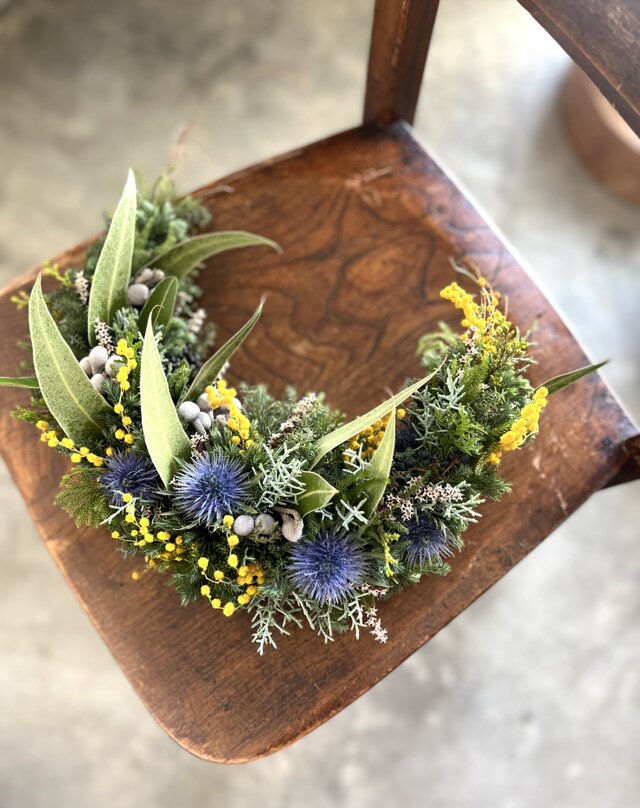 花材…ミモザミランドール.タチカズラ.ヒムロ杉