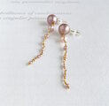 淡水パール モーブカラー グラデーション 7粒パールのロングピアス 14kgf 式 発表会