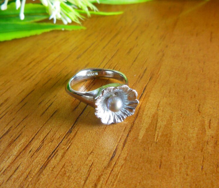 花をモチーフにした南洋パールのリングにした