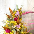 ちょっと個性派!!グレビレア・ゴールドとミモザの三日月リース