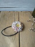 淡いカラーの花柄生地の満開バラのヘアゴムです。