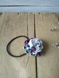 ホワイト×黒白チェック柄のカッコいいボリュームのあるヘアゴムです。パープルカラーも入っています。