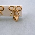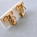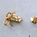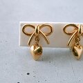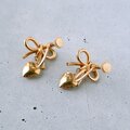 リボンの下でハートが揺れるデザインのヴィンテージイヤリングです。
