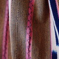 帯状の生地を繋ぎ合わせはミシンで補強している箇所もございますが、元々の生地が帯状のものをジグザグミシンか手縫いで1枚にしている布です。弱い箇所やほつれや汚れなどがある場合がございますのでメンテナンスしながらご使用ください。お洗濯は、優しく水で手洗いして、すぐに乾かすと色落ちはほとんどありません(浸け置きやお湯洗いは避けてください。)修繕しながら経年の変化もお楽しみいただける味のある生地です。