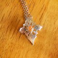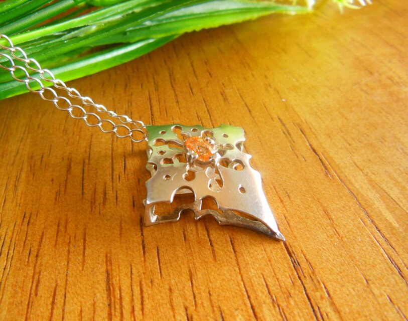 明るい色のオレンジサファイアのペンダントです。透かしづくりにしてあるので非常に軽いです。 素材:silver950 オレンジサファイア チェーン:58cm