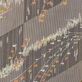 落ち着いたくすみパープルの地に、縦のラインを強調した幾何学的な地紋と、可憐な小花が描かれた洗練の一着です。 直線的な地紋と、しなやかな花の対比が、都会的でシャープな印象を与えます。纏うだけで表情をミステリアスに、美しく引き立ててくれるお色味。