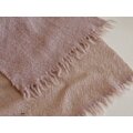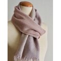 ベージュグレー(ピンクより)のアルパカをベースに淡いピンクとイエローのカシミヤ糸を合わせた手織りの薄手マフラーです。