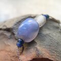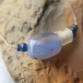 鮮やかな菫色の古代ブルーレースと出土ロシアンブルーを並べ、ネックレスに仕上げました。