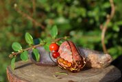 土臭い色合いを生かすために、アンティークゴールドのワイヤーで巻きました。