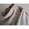 SuperZeaウールと呼ばれるニュージーランドのカシミヤに匹敵するエクストラファインウールの細めの糸を経糸に、子羊の毛からつくられたラムウールの少し太めの糸を経糸に用い程よい厚みに織り上げました。