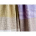 SuperZeaウールと呼ばれるニュージーランドのカシミヤに匹敵するエクストラファインウールの細めの糸を経糸に、子羊の毛からつくられたラムウールの少し太めの糸を経糸に用い程よい厚みに織り上げました。