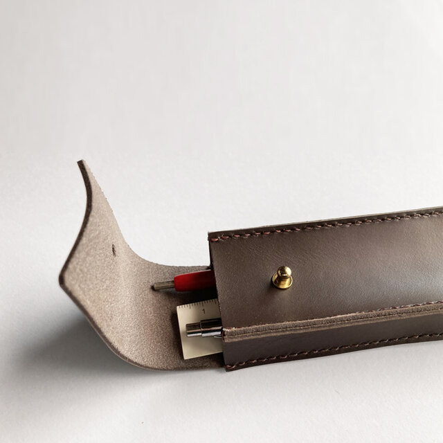 スムースレザーのスリムペンケース(チョコレート)