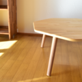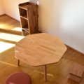 丸く優しい角のハチカクテーブルです。