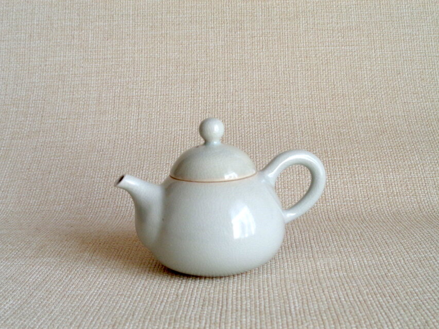 穏やかな輝きのある白磁に、細かく入った貫入が美しい小さい煎茶用の注器です。