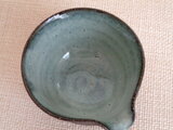 味わい深い土の質感に内側の青釉が美しく映える片口です。