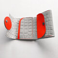 牛革の小さなお財布(グレー×ネオンオレンジ)