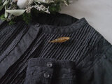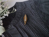 軽いのでブラウスや薄手のニットにもつけられますよ。
