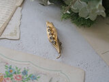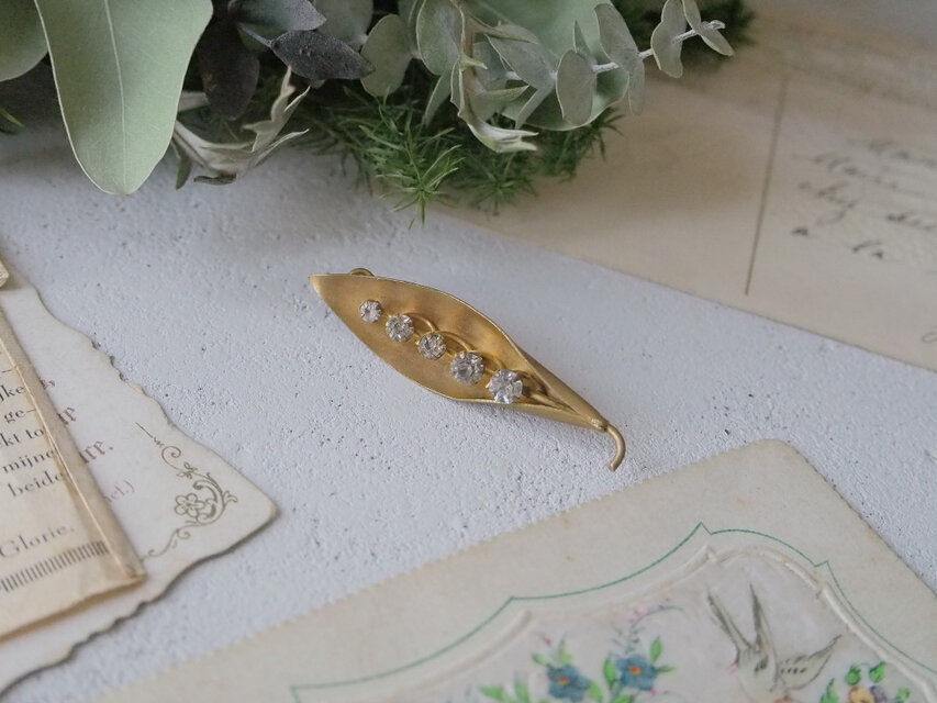 丸みのあるリーフにつつまれた、すずらんのアンティークブローチです。