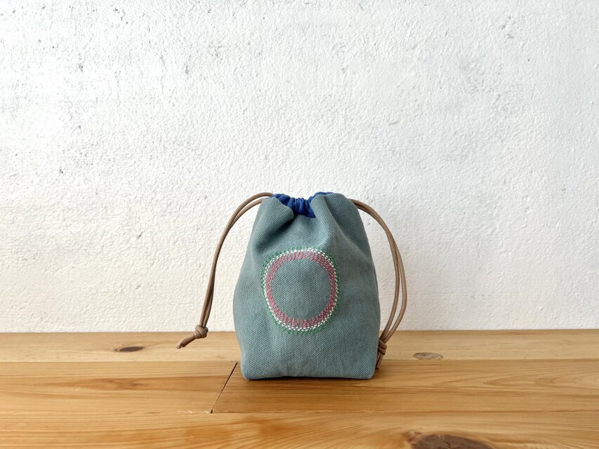 洗い加工された手触りの良い帆布に、刺繍をしました。