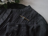 横長のバーがかっちりとした印象もあるので、スタンドカラーの襟元や、シャツの胸元にも似合いそう。