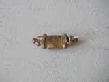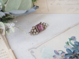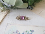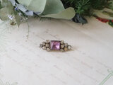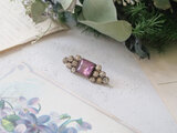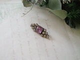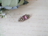 四角いパープルのガラスがかわいい小さなブローチ。