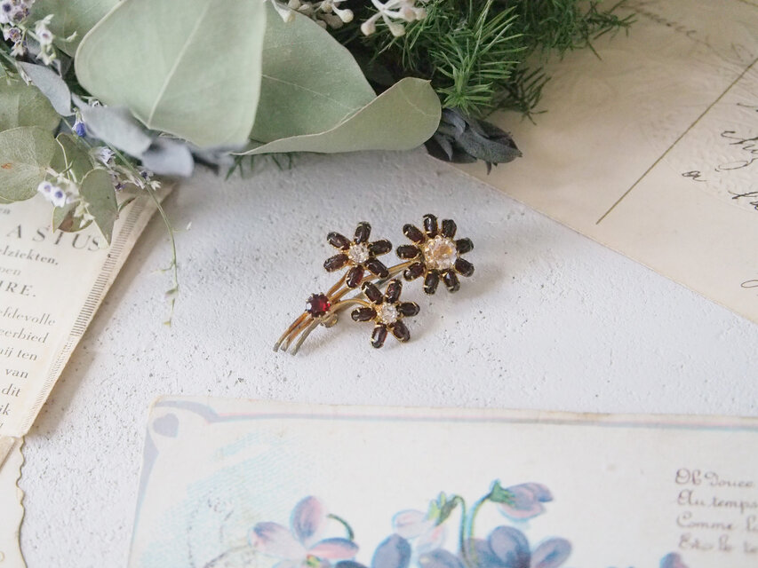 赤い小花のヴィンテージブローチ
