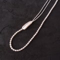 繊細なシードパールでアクセントをつけた非対称デザインのネックレス。