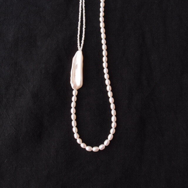 【K14gf】Biwa Pearl Asymmetry Necklace /ビワ×ケシパール アシンメトリーネックレス