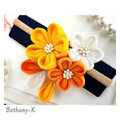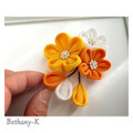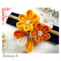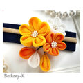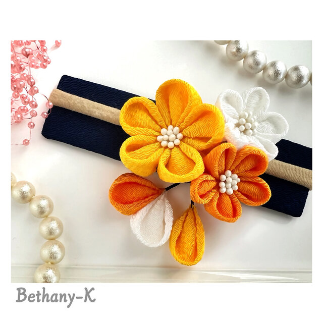 お食い初めや初節句に◆小花が可愛い和モダン髪飾り(下がり付き)◆白×山吹×金木犀色のママでも簡単につけられるつまみ細工
