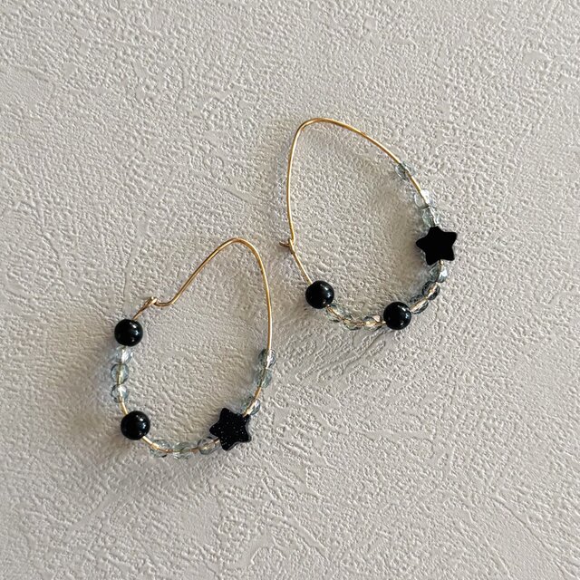 【素材】ブルーゴールドストーン星形ビーズ,ガラスビーズ,樹脂ビーズ, 14kgf 0.8mmワイヤー