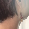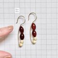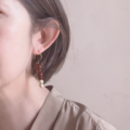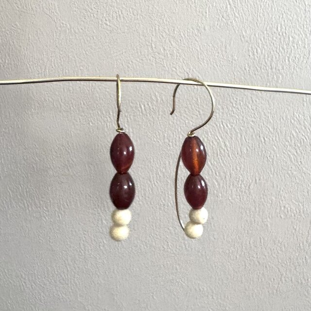 カーネリアンとマーブルのビーズを組み合わせ、バイカラーのピアスを作りました。