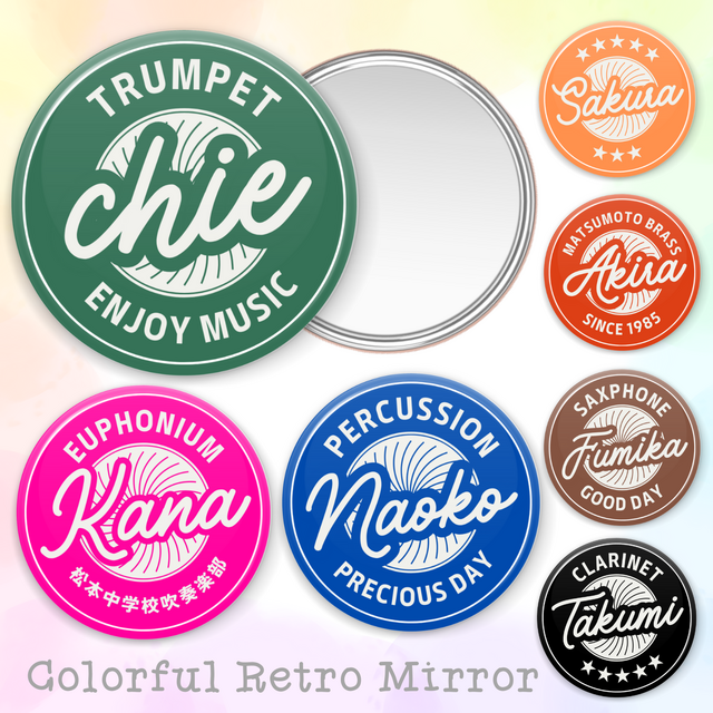 【カラフルレトロの名入れミラー】推し活 引き出物 席次 絵の具 名前 楽器 吹奏楽 卒業記念品 鏡 プチギフト