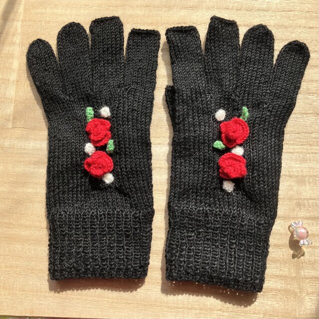 フラワーギャラリーをイメージして紅ばらのアップリケ手袋を作成しました。