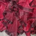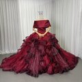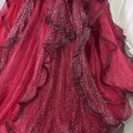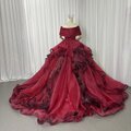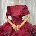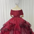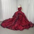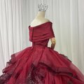 豪華!カラードレス ワインレッド オフショルダー キラキラチュール プリンセスライン ラッフルフリル 前撮り