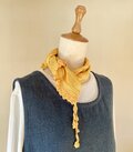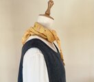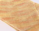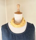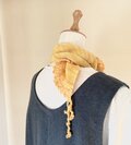 チューブ状に縫い合わせたミニマフラーは黄色の段染めコットン糸を使用し、縁編みをして仕上げています。