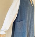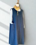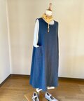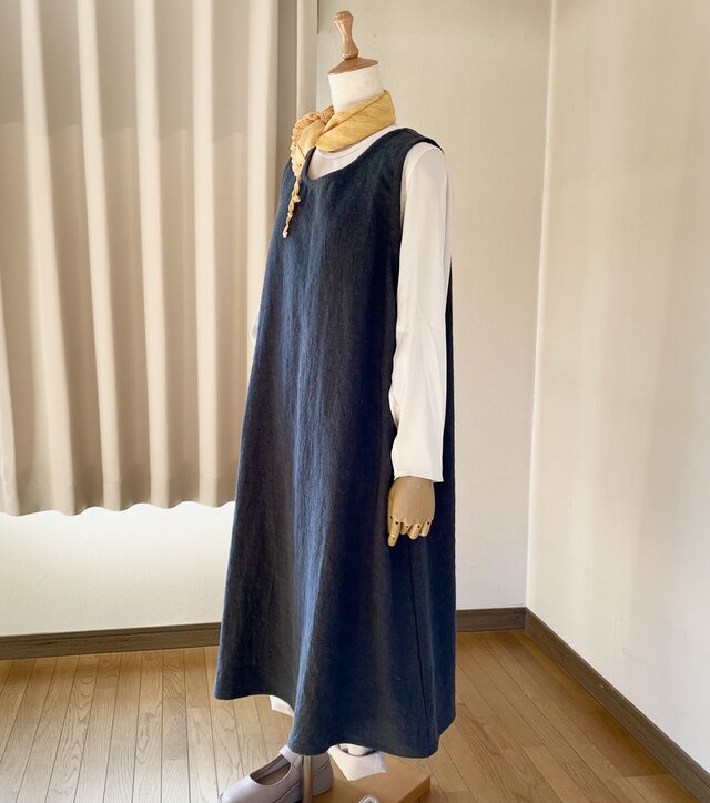 リネンウールのジャンパースカートと手織りのチューブマフラー