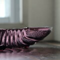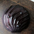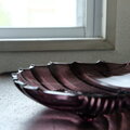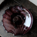【特価¥980→¥500】大きな貝殻の形◆お刺身を盛り付けたくなる。昭和中~後期 プレスガラス脚付き大皿 古道具 古民家