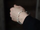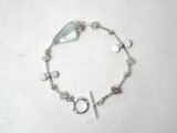 ムーンストーン・ロンデルと個性的なカレンシルバー・ビーズを組み合わせ、シルエットが印象的なシルバーブレスレットに仕立てました。