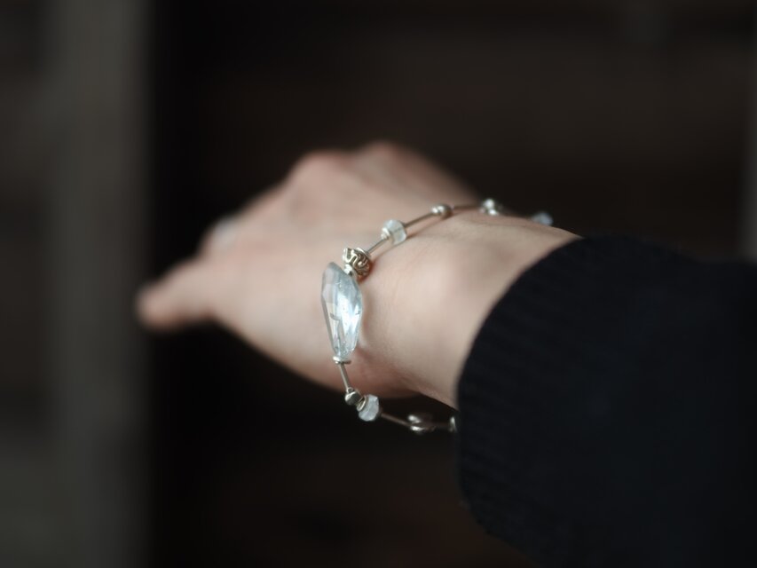 アクアマリンとムーンストーンを散りばめたシルバーブレスレット