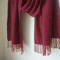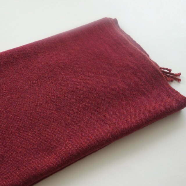レンガ色のたて糸にワインカラーのよこ糸を入れて織りました。