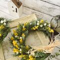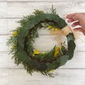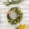 • 素材:アーティフィシャルフラワー(ミモザ、小花、グリーン)、天然素材(つる土台)、ラフィア