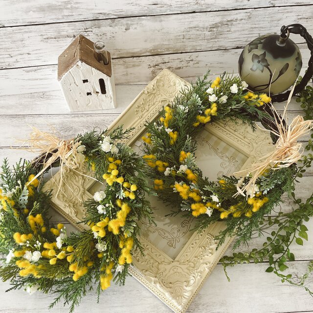 ミモザリース 春色新作2026 リース 玄関 インテリア雑貨 ミモザ アーティフィッシャルフラワー