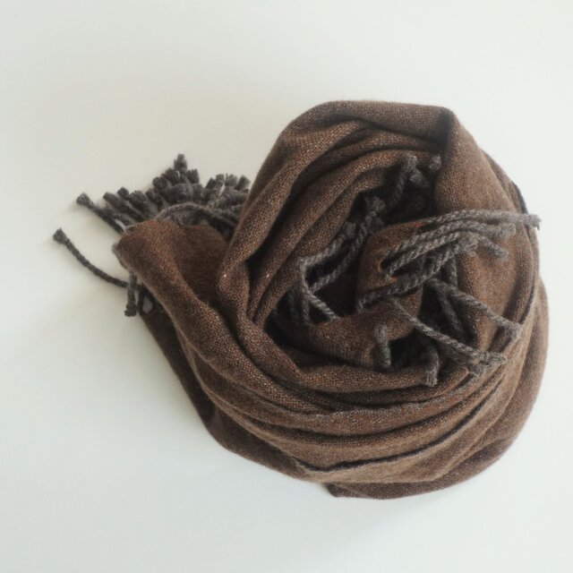 手織りカシミアストール・・セピア